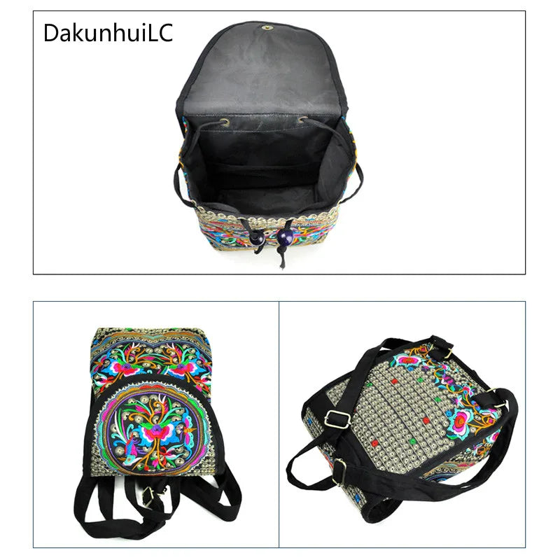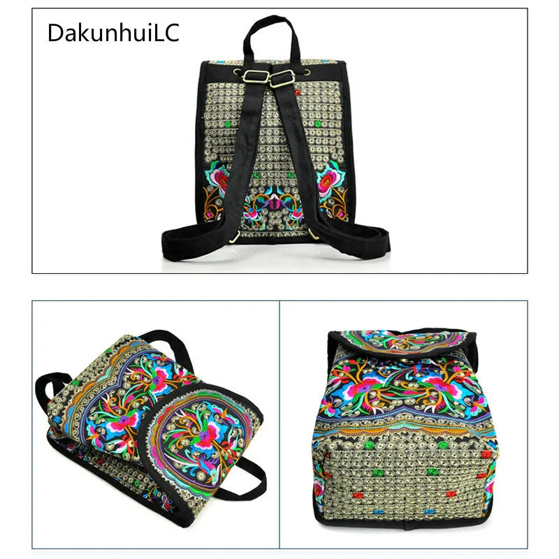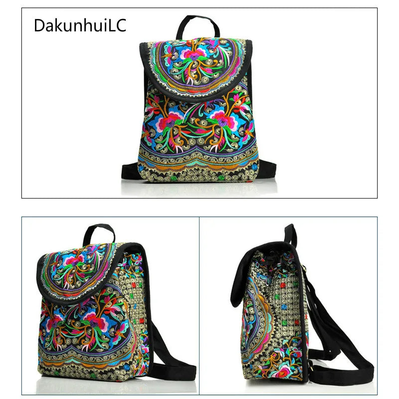 Vintage Embroidery Ethnic Backpack Flower Travel Shoulder Bag