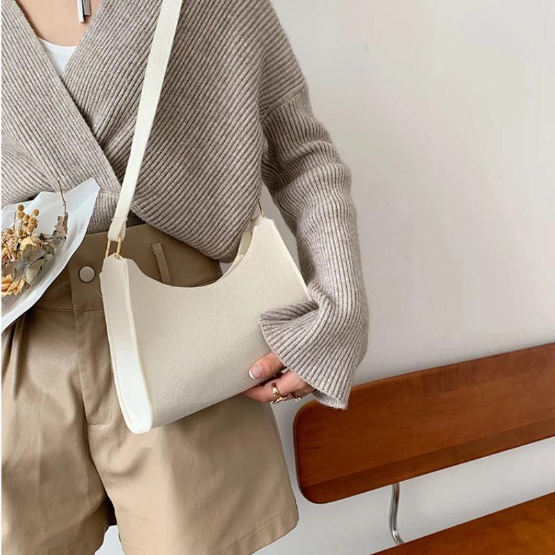 Vintage Felt Cloth Shoulder Bag Women Casual Solid Tote Handbag