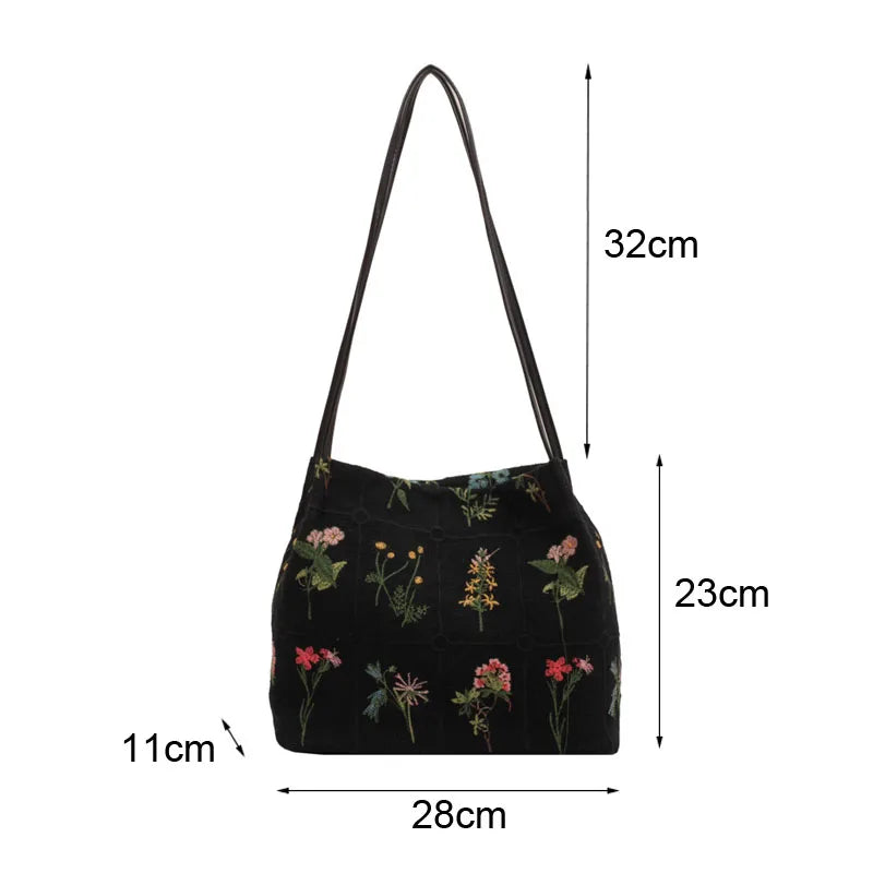 Elevate your style with this fashionable shoulder bag featuring a vintage flowering pattern. Made of cotton linen cloth, this handbag is perfect for everyday use.
