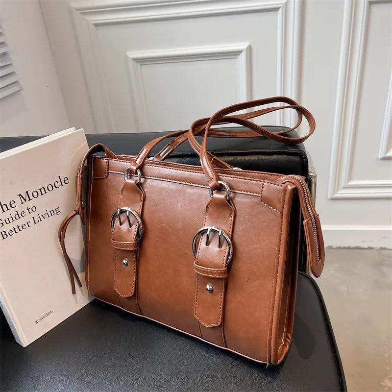 Vintage Large Capacity Women's Shoulder Bag PU Leather Tote