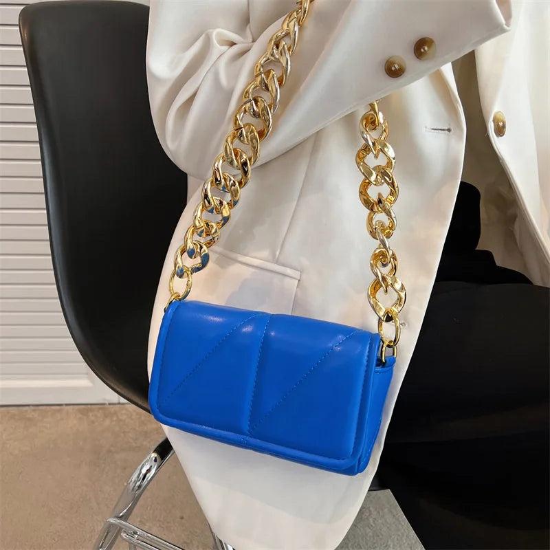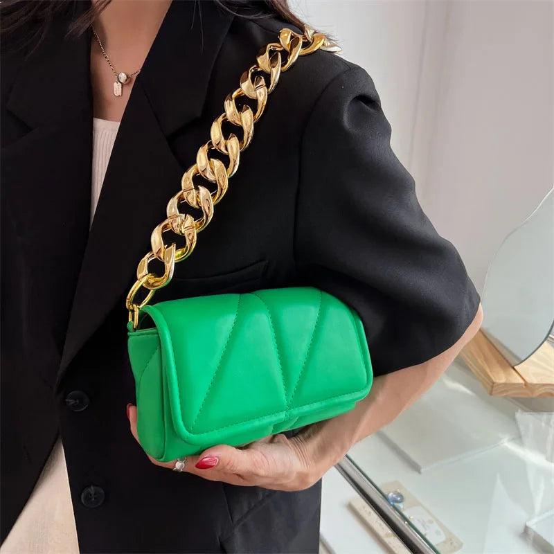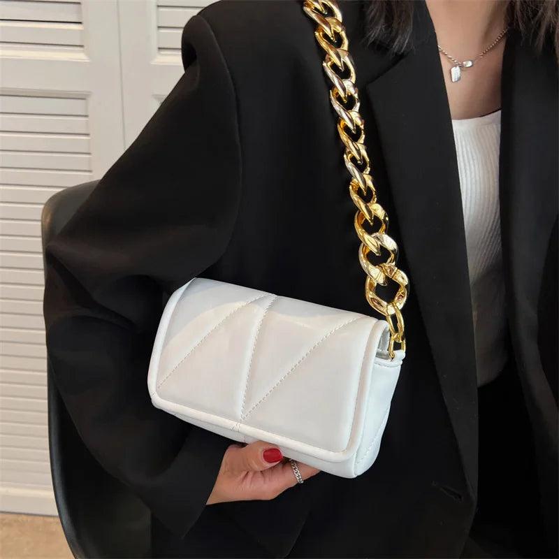 Vintage Leather Shoulder Bag Woman Chain Small Handbag