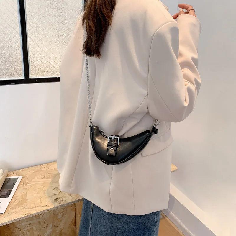 Stay trendy with this vintage moon design mini baguete bag. The perfect accessory for any occasion.