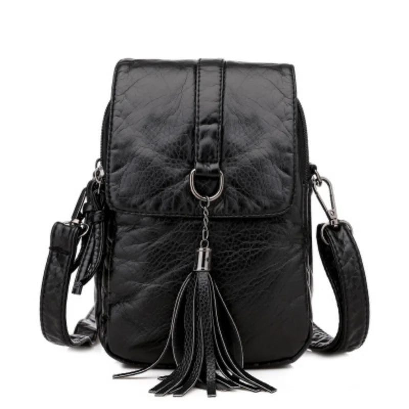 Vintage PU Leather Phone Bag Cross Body Tassel Small Shoulder Bag