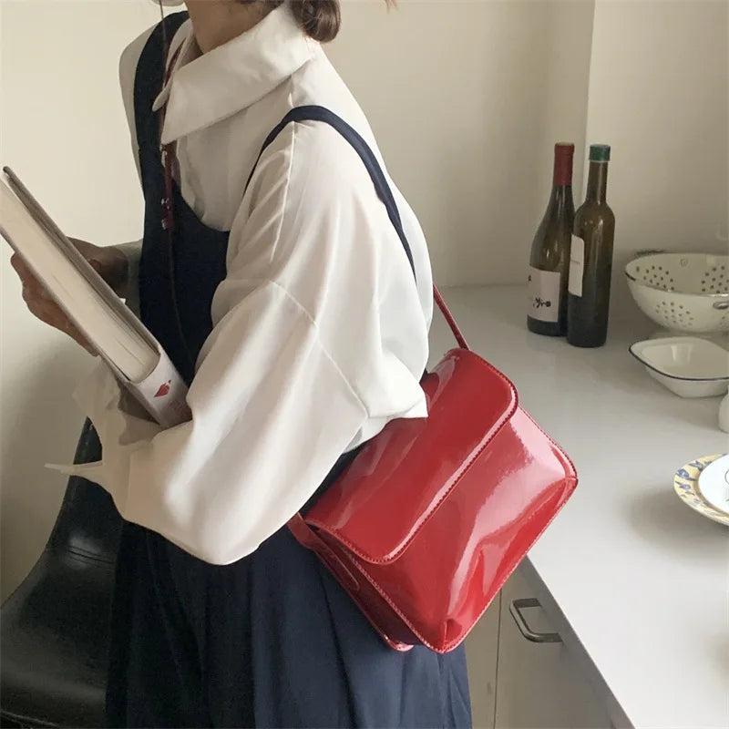 Elevate your style with this vintage red square shoulder bag made of patent leather. It's a solid female handbag perfect for any occasion.