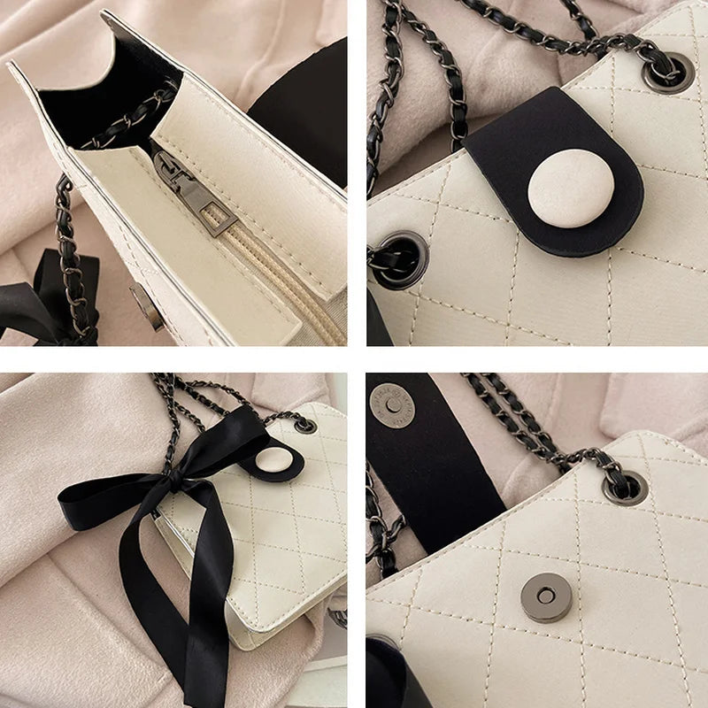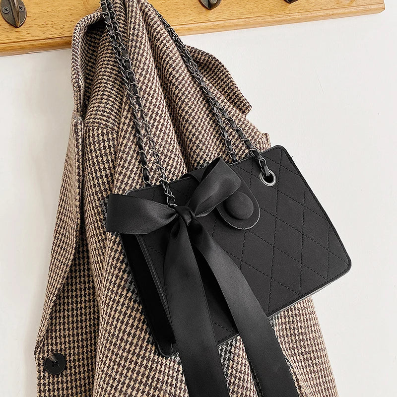 Vintage Shoulder Bag Matte Diamond Lattice Chain Bow Cross-body