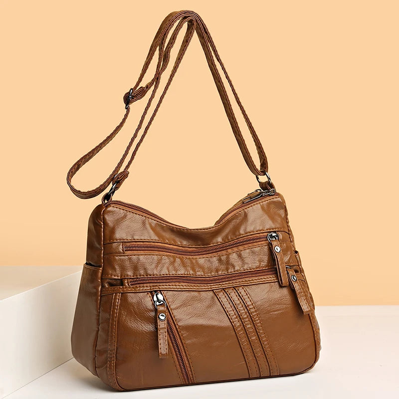 Elegant and casual vintage handbag made of soft leather. Perfect for everyday use and adds a touch of style to any outfit.
