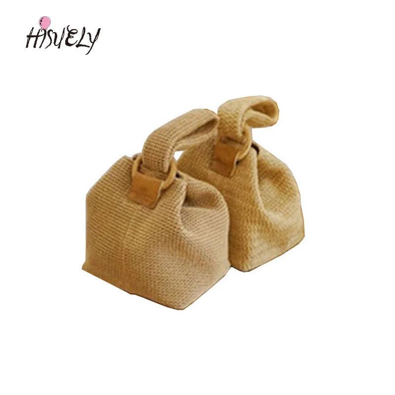 Vintage Straw Beach Bag Crossbody Lock Handbag Lady Knit Shoulder Bag