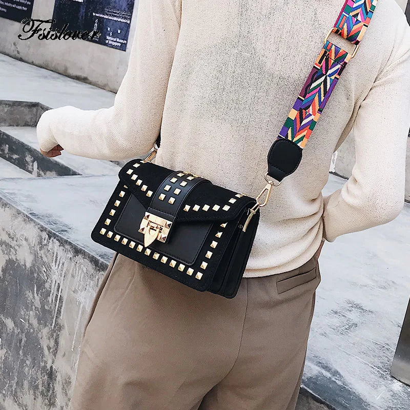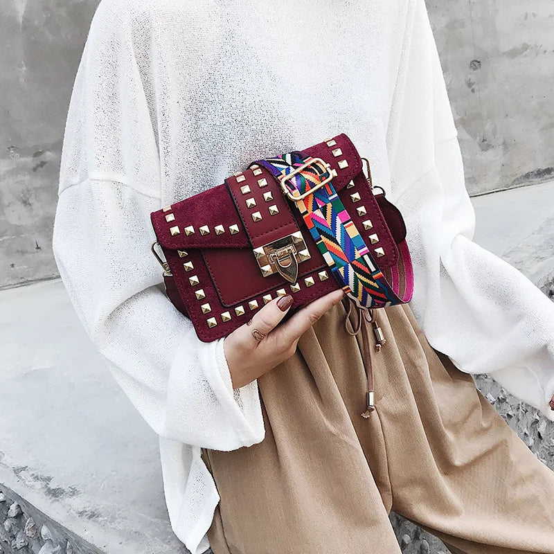 Vintage Velvet Rivets Shoulder Bag Women Messenger Bag Ladies Pu Leather Flap Ba