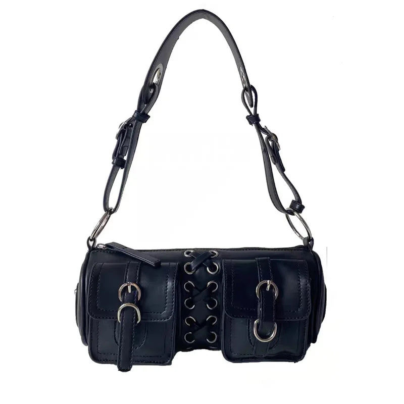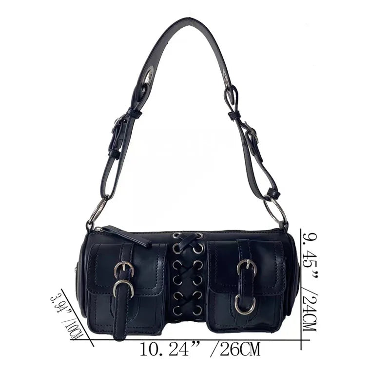 Vintage Women Cylinder Underarm Bags Double Pocket Ladies Shoulder Bag