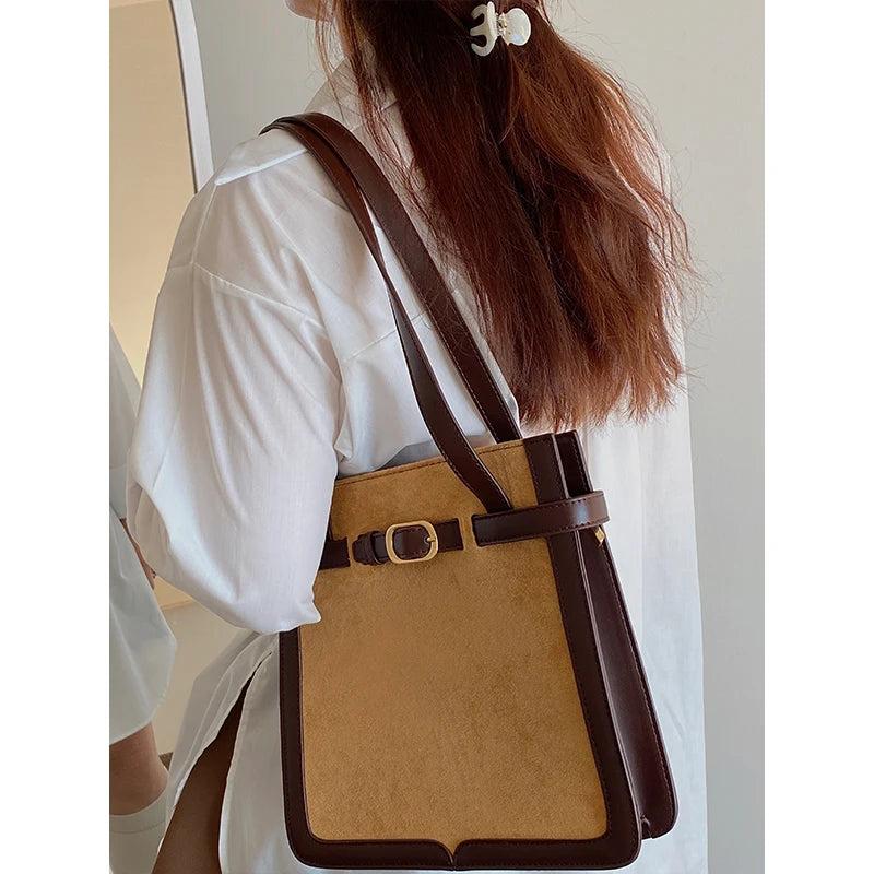 Elevate your style with this vintage faux suede shoulder bag. Made of soft leather, this underarm bag is perfect for daily use.