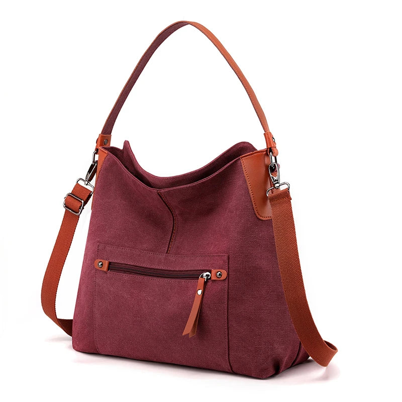 This vintage women's shoulder bag is perfect for everyday use. Made of canvas, it features a top-handle design with a crossbody strap. Carry your essentials in style with this versatile handbag.