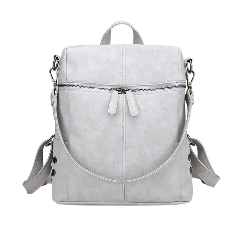 Waterproof Leather Backpack Women Purses Zipper Female Casual
