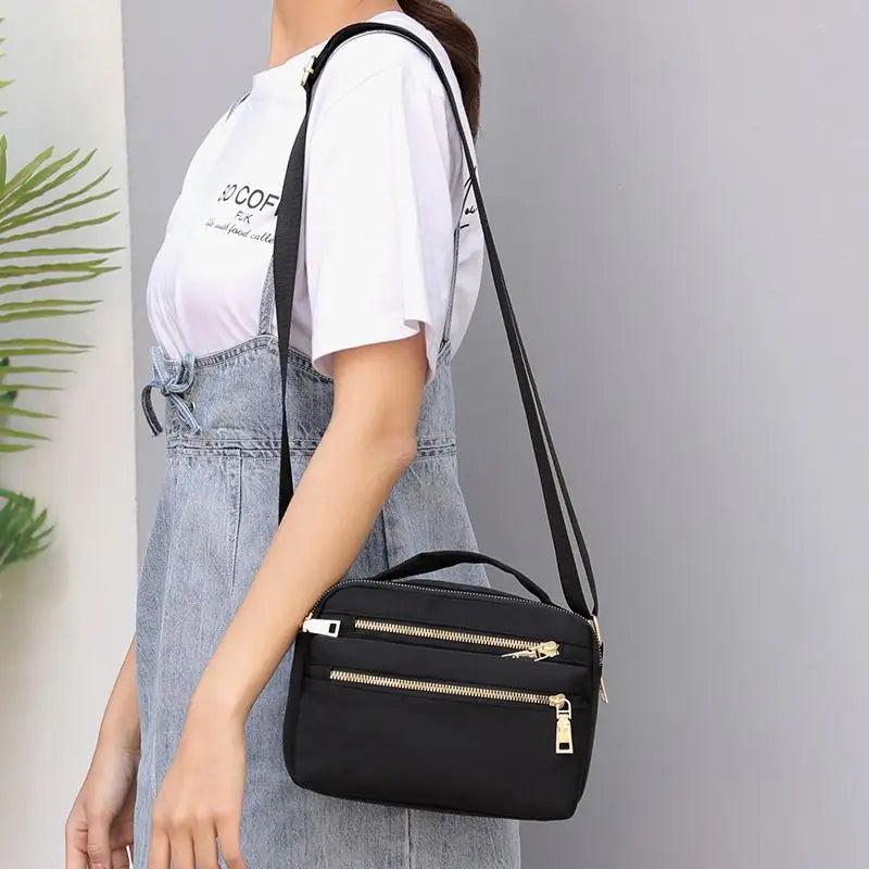 Stay stylish and organized with this waterproof nylon shoulder bag featuring multiple pockets and a secure zipper design. Perfect for everyday use!
