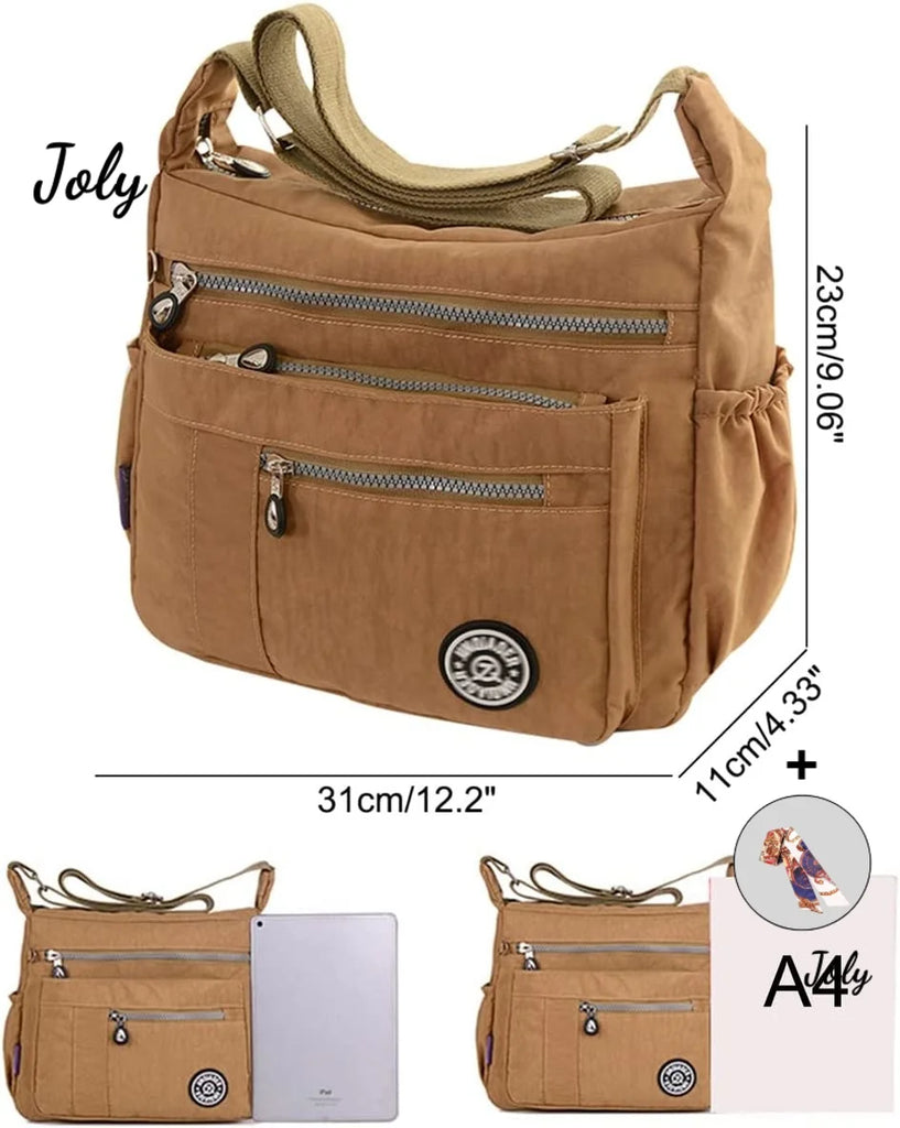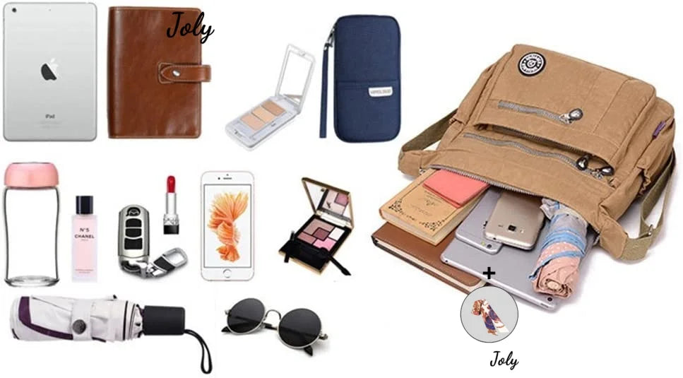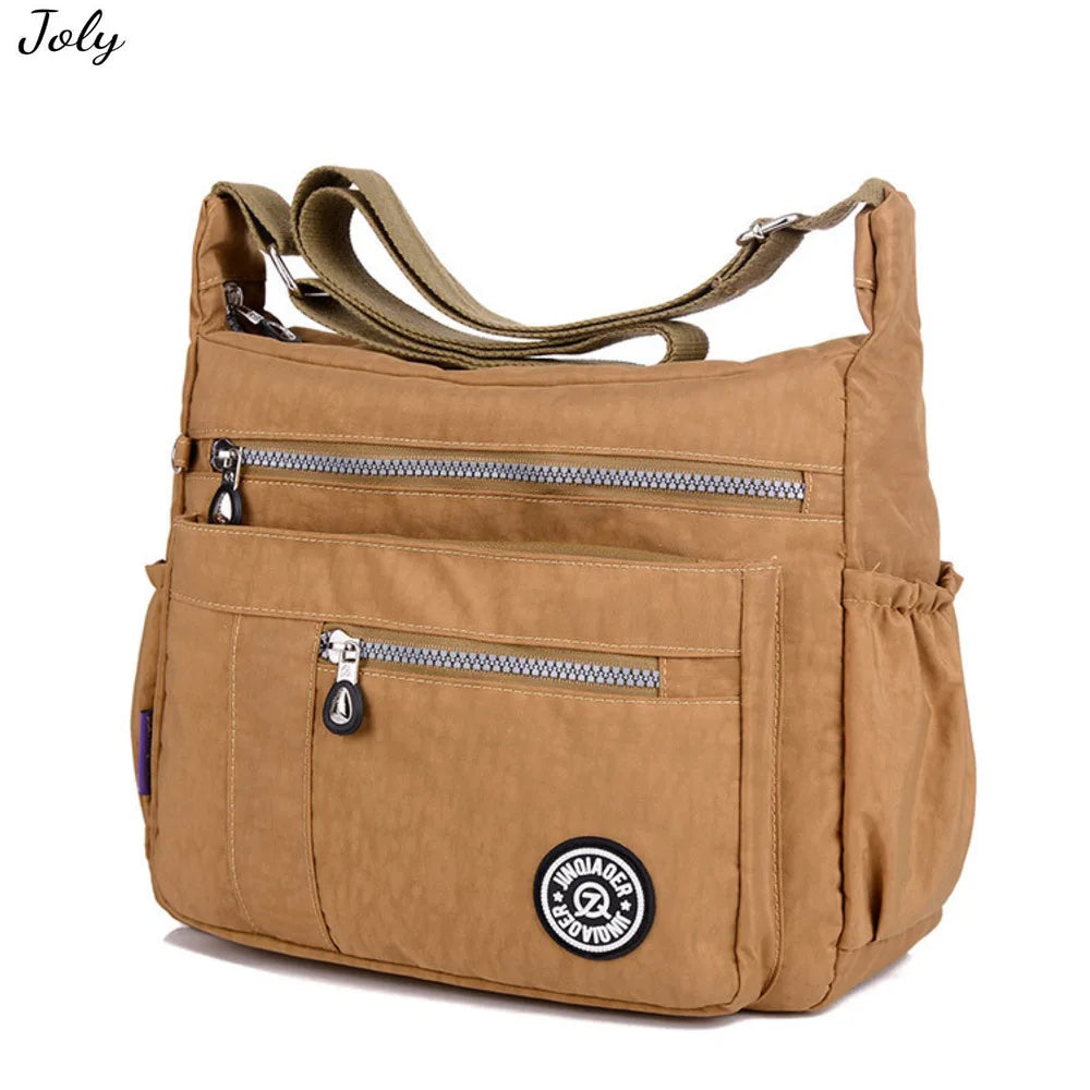 Stay stylish and organized with this waterproof nylon shoulder bag. Perfect for women on the go, this canvas messenger bag is durable and versatile.