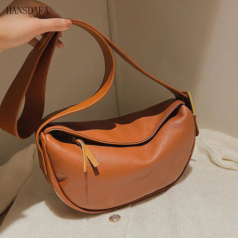 Wide Shoulder Strap Leather Shoulder Bag for Women