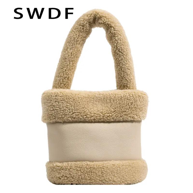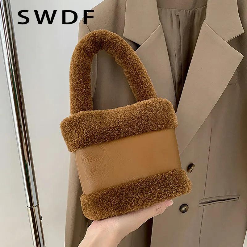 Stay cozy and stylish with this retro winter woolen faux fur tote bag. The teddy curl plush design adds a touch of luxury, making it the perfect accessory for colder weather.