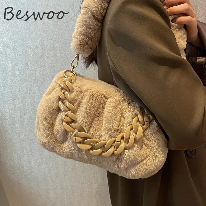 Winter Fluffy Fur Women Shoulder Bag Chain Plush Handbags