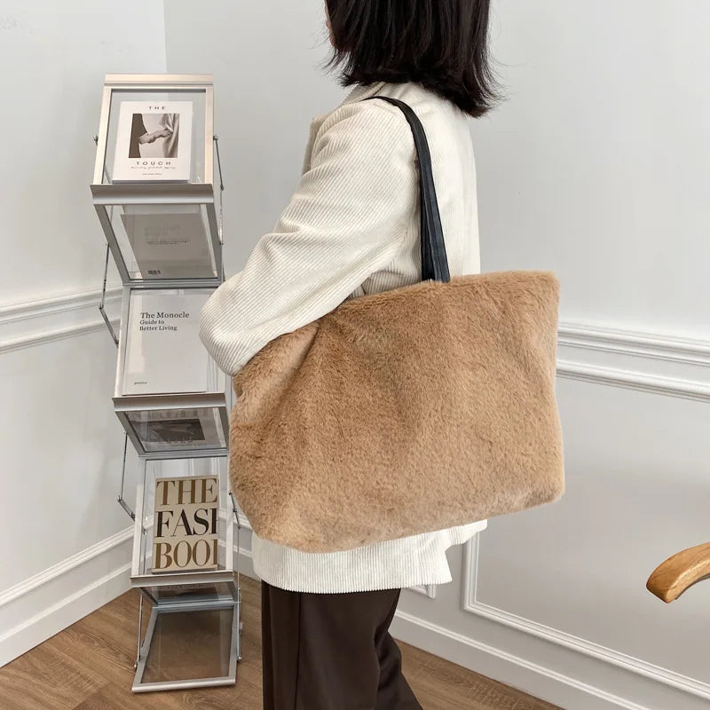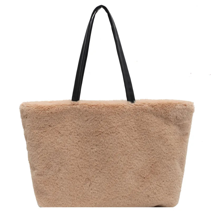 Stay stylish and cozy with this winter soft plush tote bag featuring faux fur material. Perfect for adding a touch of luxury to your outfit.