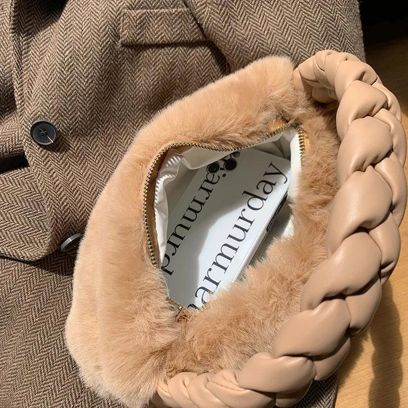 Stay stylish with this lovely underarm shoulder bag made of faux fur, perfect for casual outings, dinner parties, and more.