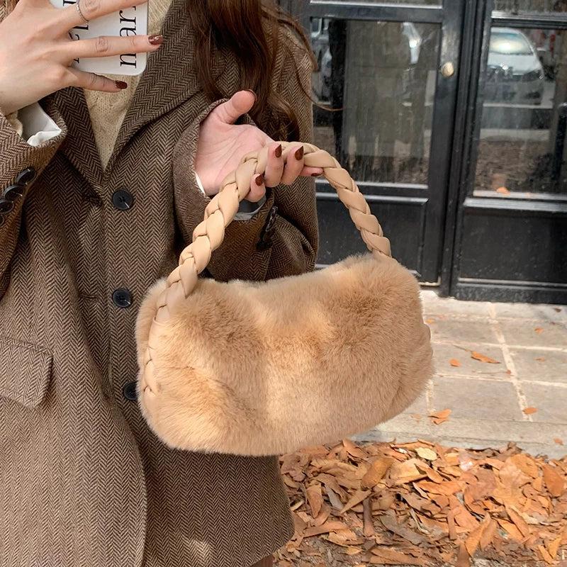 Winter Sweet Girls Underarm Bags Faux Fur Shoulder Bag