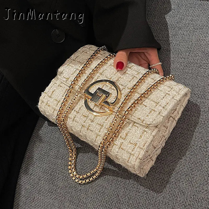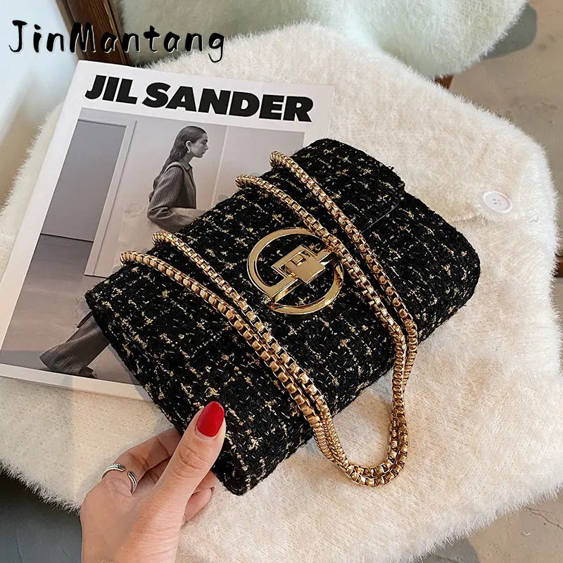 Stay stylish and cozy with this high-quality woolen flap armpit bag perfect for winter. Featuring a messenger style design with a chain strap.