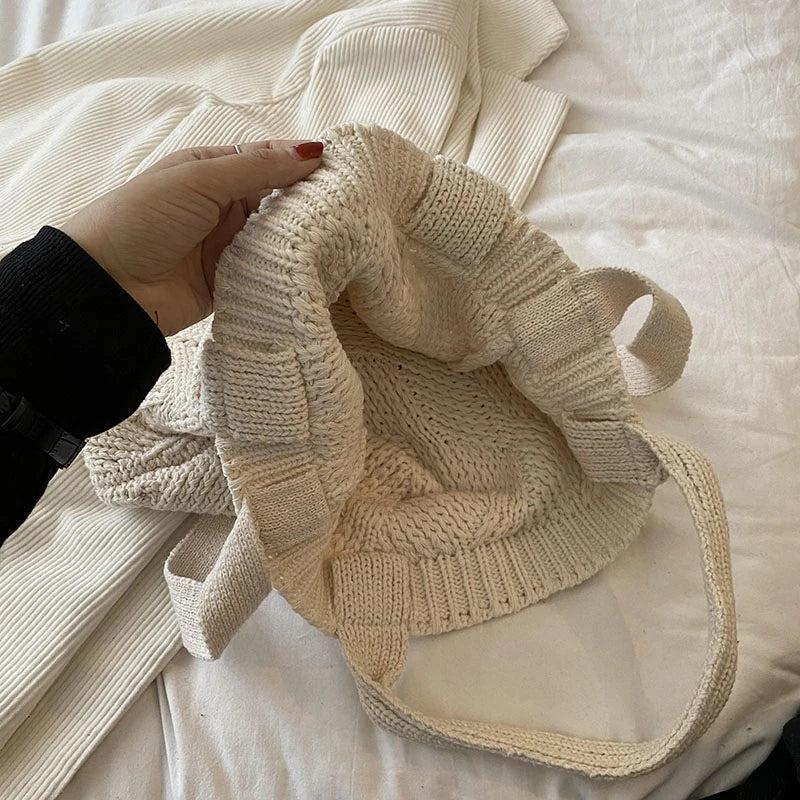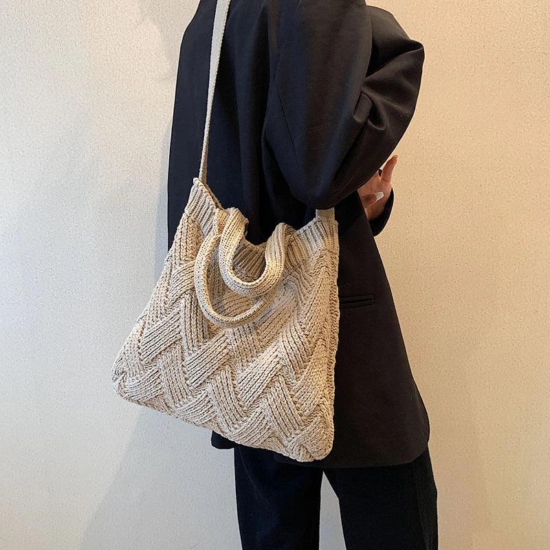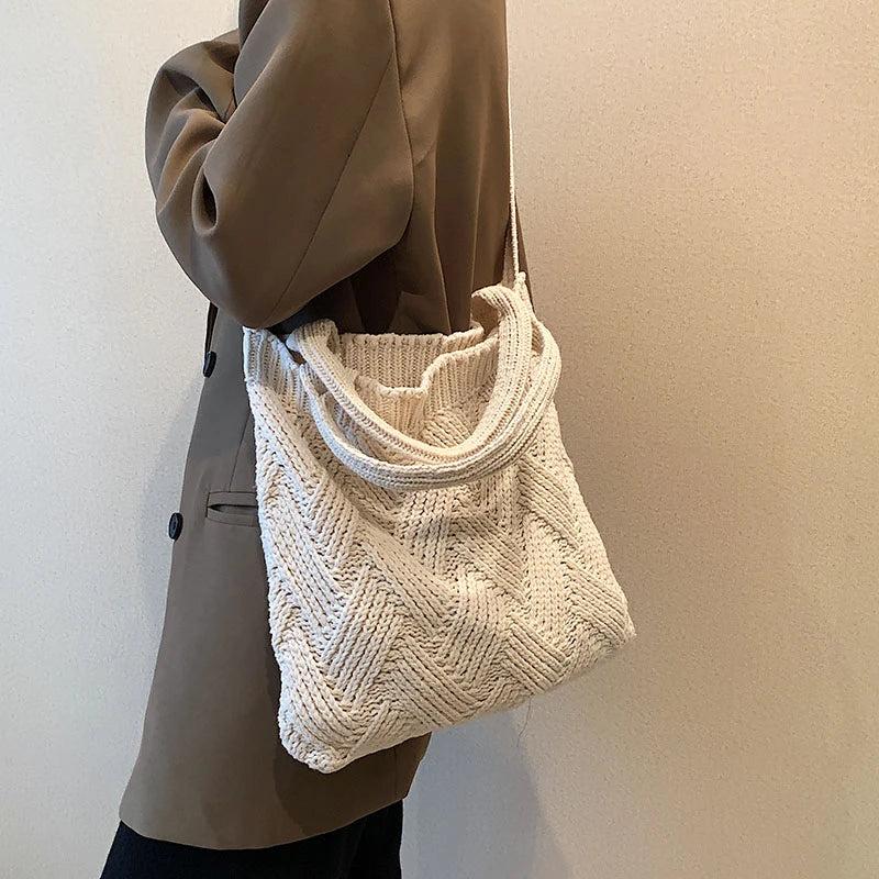 Stay stylish and cozy with this knitted shoulder bag that offers a high capacity for all your essentials. Perfect for winter outings or everyday use, this messenger bag is a must-have accessory for ladies.