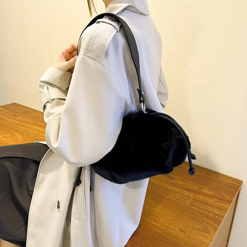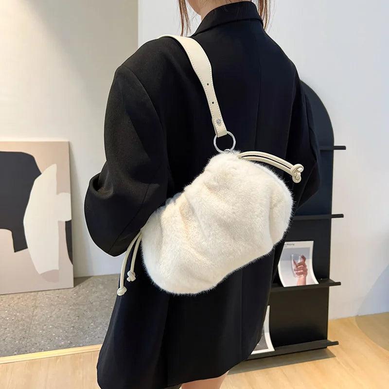Stay cozy and stylish with this plush shoulder bag for women. Made of faux fur, this high clutch handbag is perfect for the winter season.