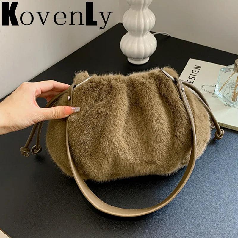 Winter Woolly Faux Fur Shoulder Bag Clutch Hand Purse