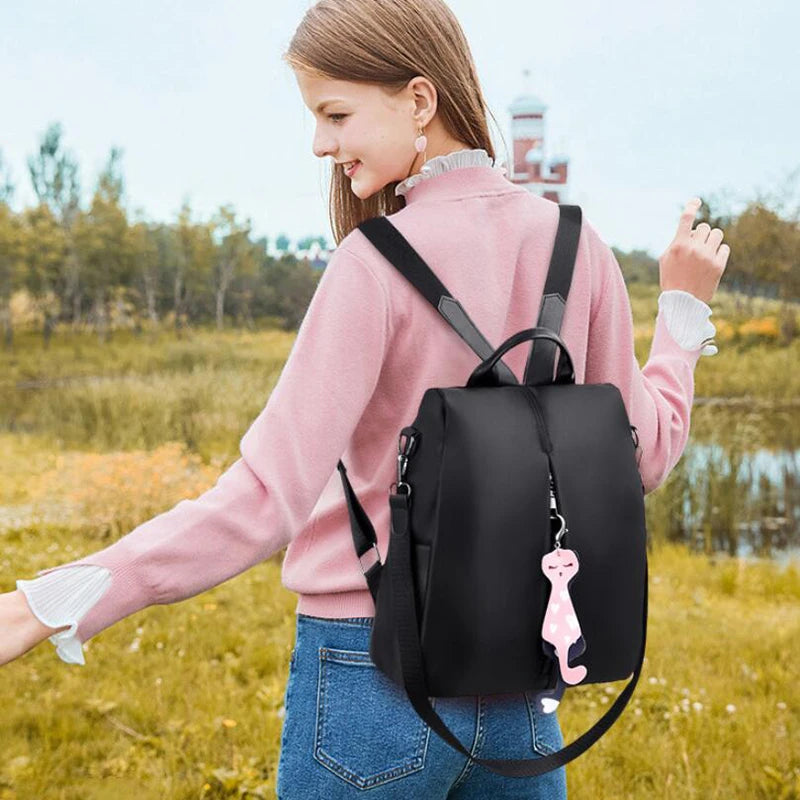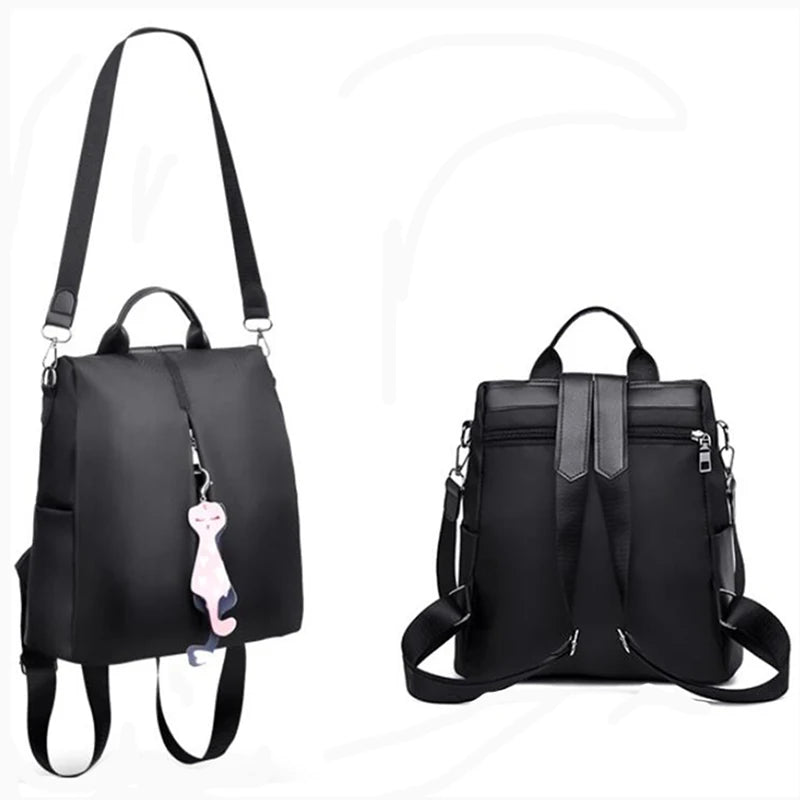 Women Backpack Oxford Bag Cat Pendant Travel Backpack