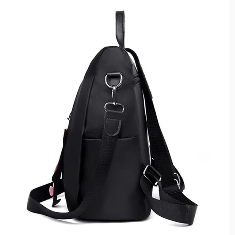 This women's backpack is made of durable Oxford fabric with a cute cat pendant. It's perfect for young girls and ladies on-the-go.