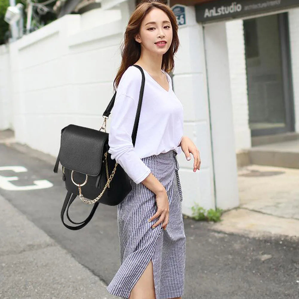 This mini PU leather backpack is perfect for teenage girls and ladies. It serves as a schoolbag, shoulder bag, and travel bag, offering multi-functionality.