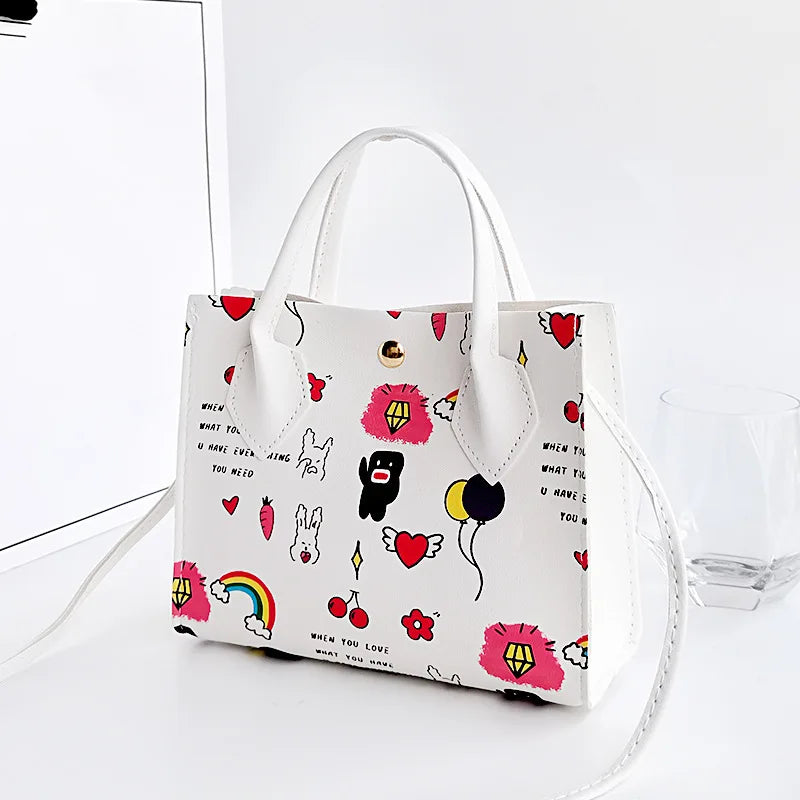 This stylish handbag features a unique graffiti painting design, making it a fashionable accessory. It offers a large capacity and can be worn as a crossbody or obliquely. Perfect as a gift for any occasion.