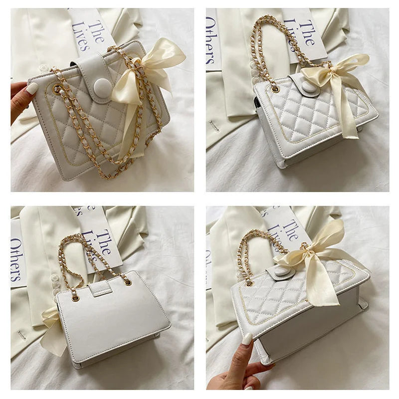 Description:This elegant handbag features a classic design with a bow silk scarf accent. It is perfect for daily use and special occasions.Features: Made of high-quality materials Spacious interior with zipper closure Stylish diamond lattice pattern Convenient crossbody strap Button closure for added security This product may be available in additional...