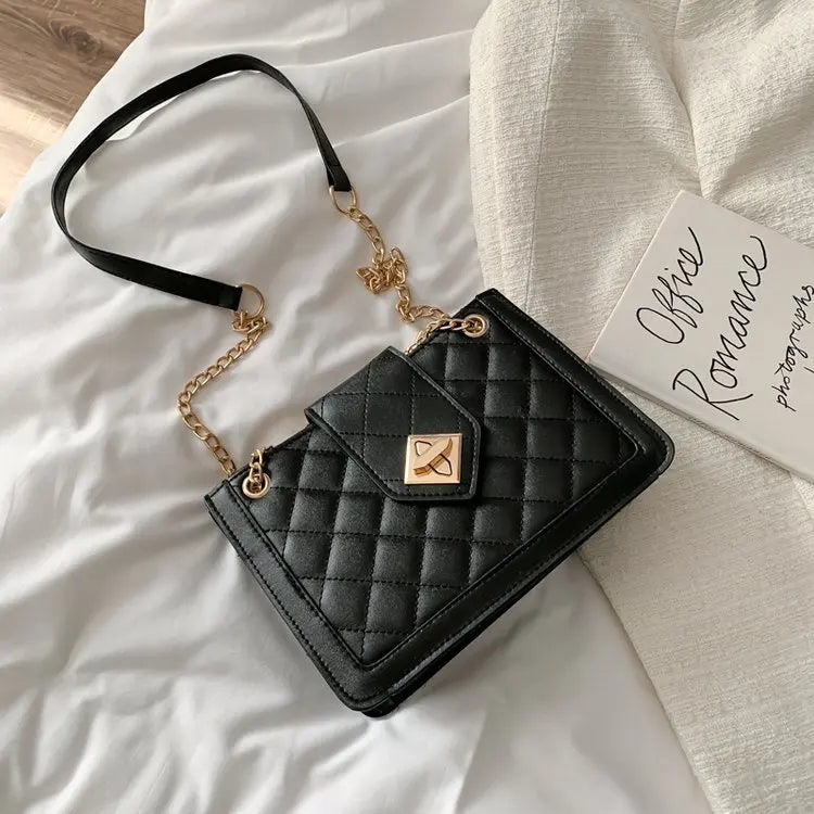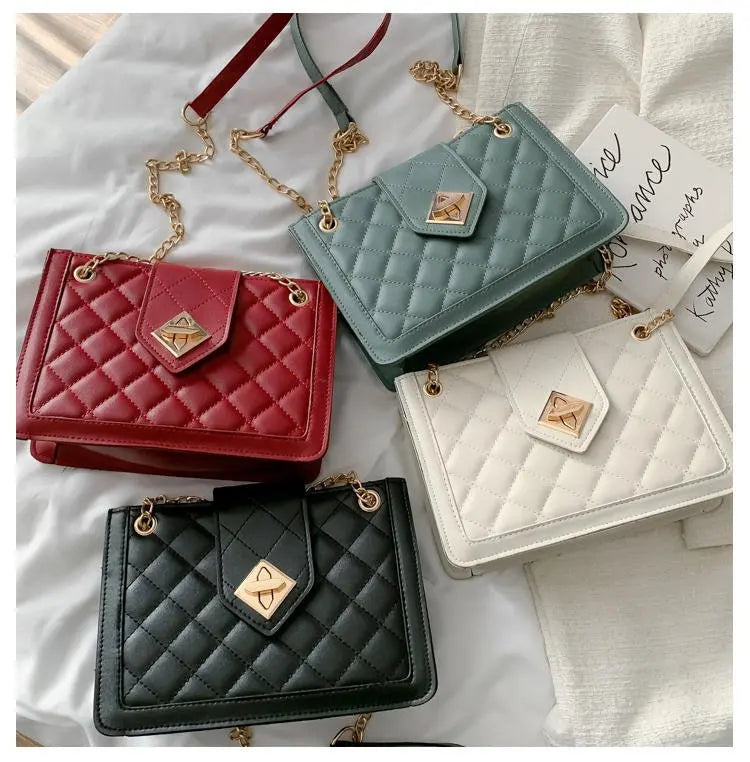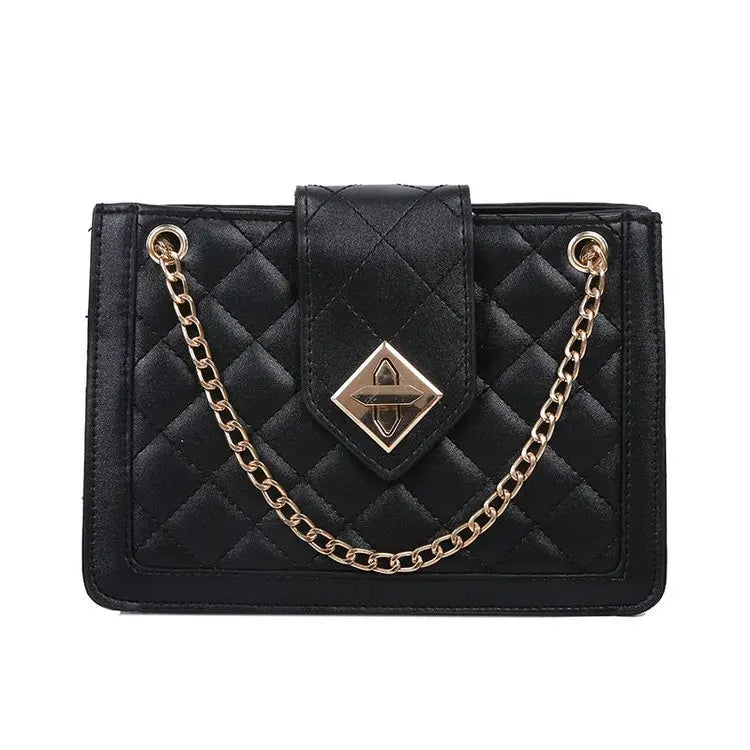 This stylish handbag is made of high-quality PU leather, perfect for carrying your essentials. It features a chain strap for a trendy look.