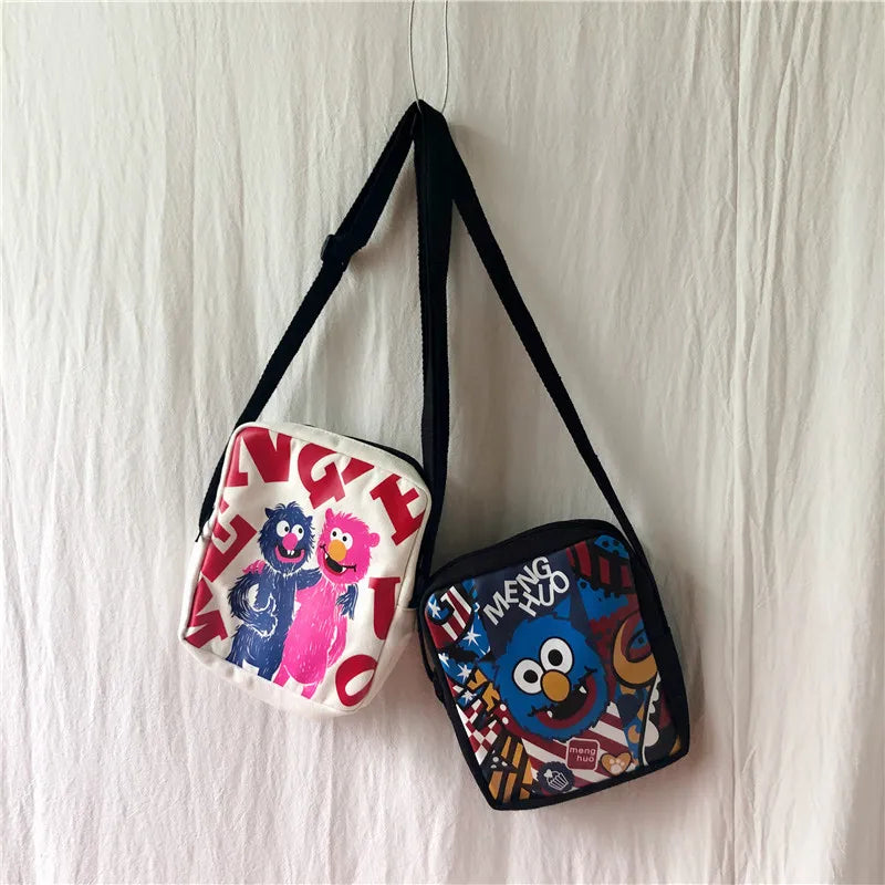 This canvas shoulder bag features a graffiti print design, perfect for school or casual outings. It can be worn as a crossbody bag and is ideal for girls and women.