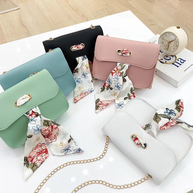 Women Chain Shoulder Bags with Silk Scarf Crossbody Bags