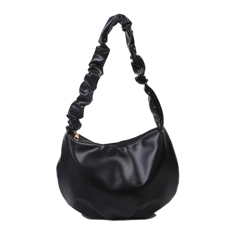 Women Cloud Underarm Bag Soft Pu Leather Solid Pleated Female Single Shoulder