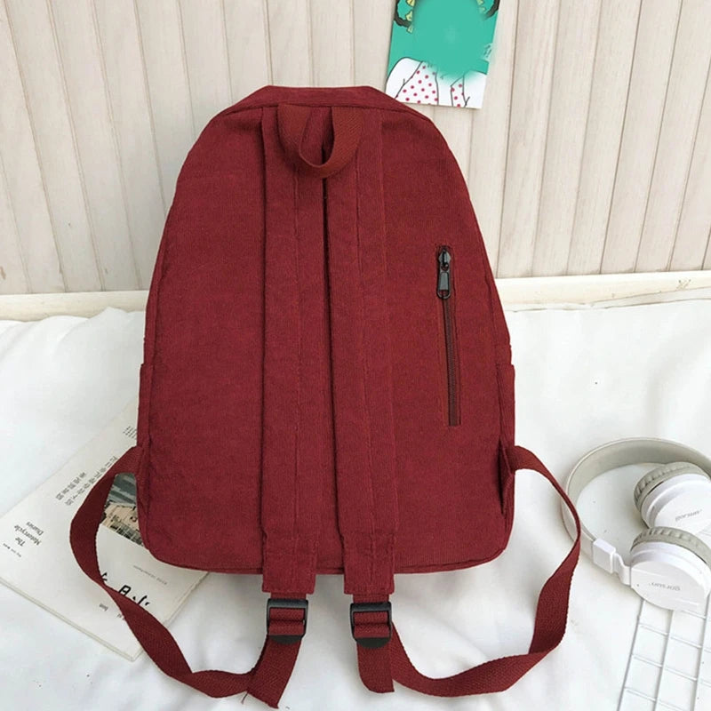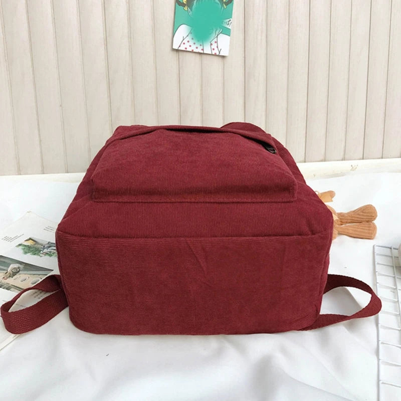 This casual corduroy backpack is perfect for women on-the-go. It features a pendant for added style and functionality. Ideal for school, travel, or daily use.