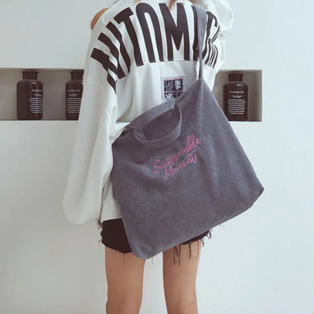 Women Corduroy Shoulder & Crossbody Bags Large Capacity Zipper Totes