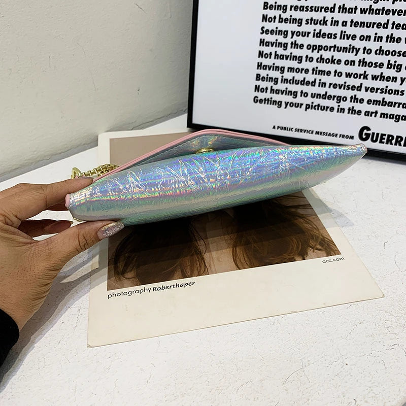 Women Envelop Clutch Handbag Purse PU Leather Chain Shoulder Crossbody Bag