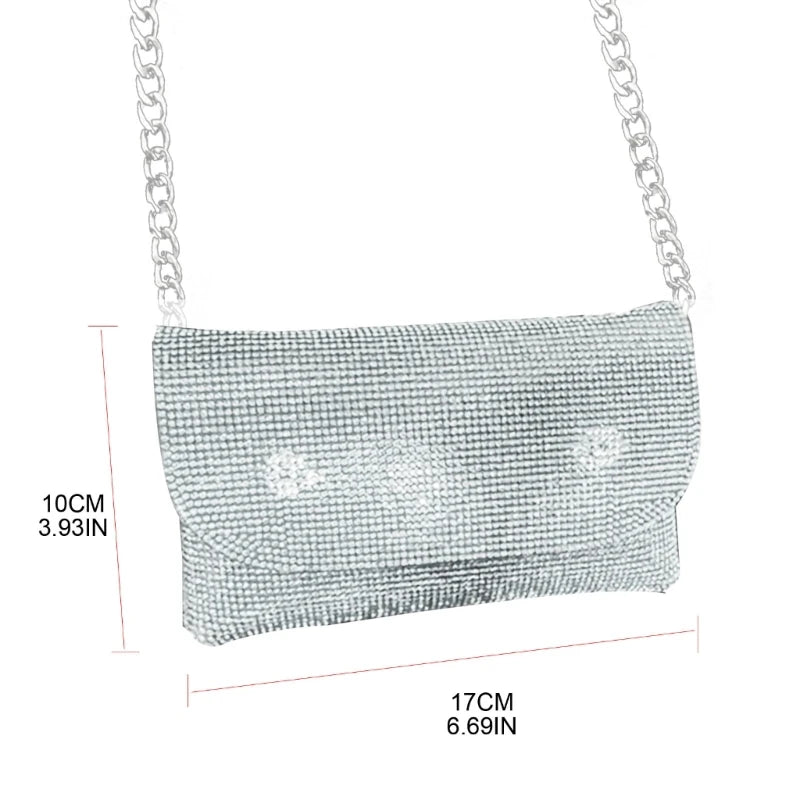This elegant evening bag is perfect for weddings, parties, prom, or any special occasion. It can be used as a clutch or a crossbody bag with the detachable chain strap.