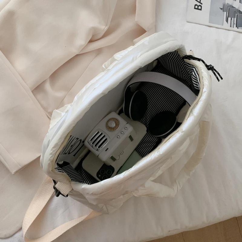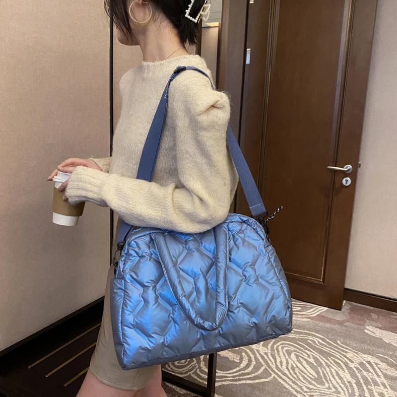 Women Feather Down Bag Cotton Padded Handbag Winter Shoulder Bag