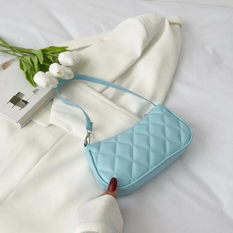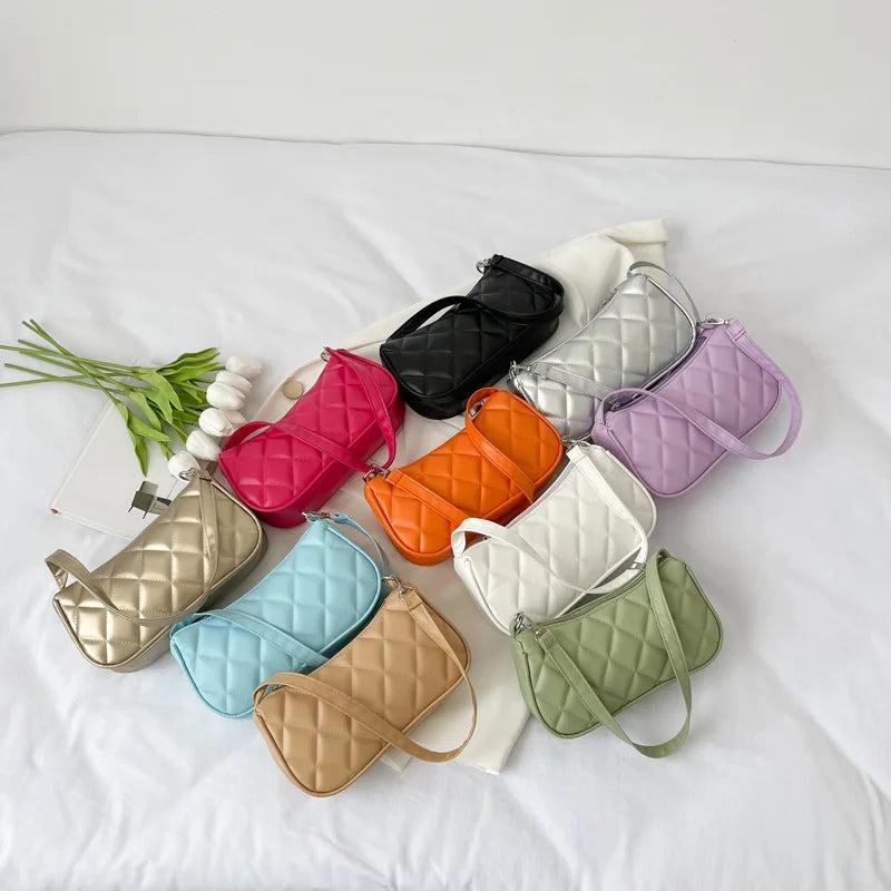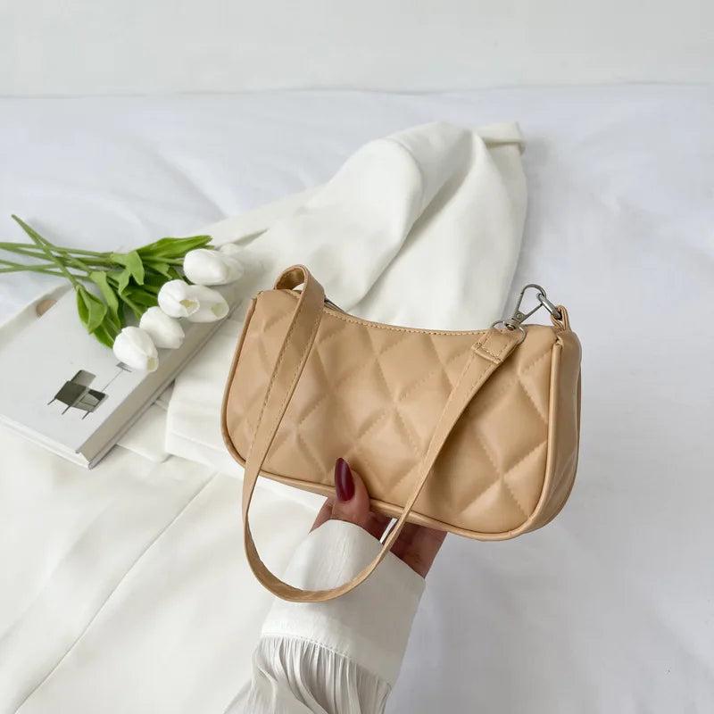 Elegant and stylish geometric PU leather shoulder handbag with a checker pattern design. Perfect for everyday use or special occasions.