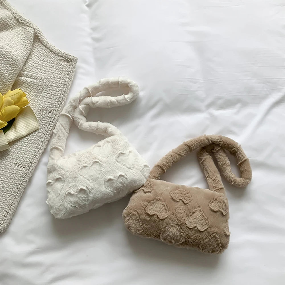 This casual plush shoulder bag features a solid heart design, perfect for everyday use. Made from soft plush material, this underarm bag is both stylish and practical.