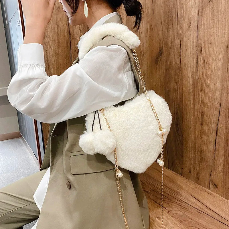 Women Heart-Shaped Chain Shoulder Bag Top Handbag Purse Totes