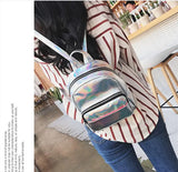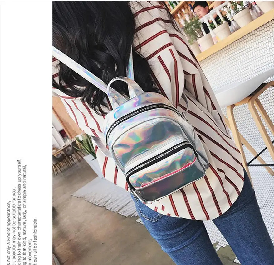 Women Hologram Backpack Laser Daypacks Female Silver Pu Leather Holographic Bags