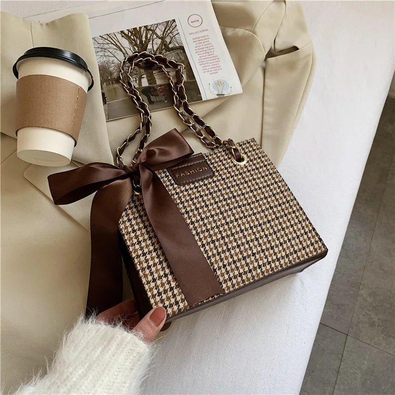 Women Houndstooth Shoulder Bag Ladies Casual Crossbody Messenger Bag