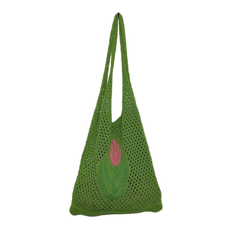 Women Knitted Handbag Soft Large Capacity Flower Mesh Pouch