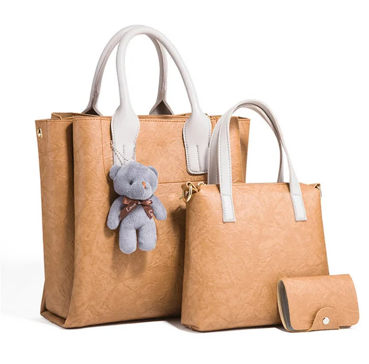 This 3-piece handbag set includes a shoulder bag, crossbody bag, and clutch wallet, all made of durable leather. The retro design adds a touch of style to any outfit.