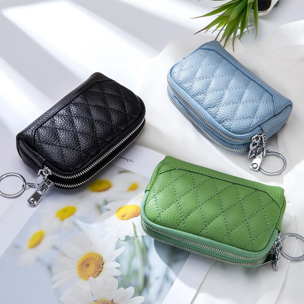 This women's wallet is made of mini cow leather with double layers, ideal for organizing your keys, coins, and cards. It features multiple compartments for convenient storage.